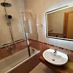 In-room comforts include an ironing set and climate control, as well as high-speed internet and a flat-screen TV with satellite channels. This accommodation is also furnished with a sofa set and a writing desk. Beds fitted with non-allergenic pillows are at guests' disposal. Bathrooms have a separate toilet, a bath, and a shower. Furthermore, a dryer and bath sheets is available.